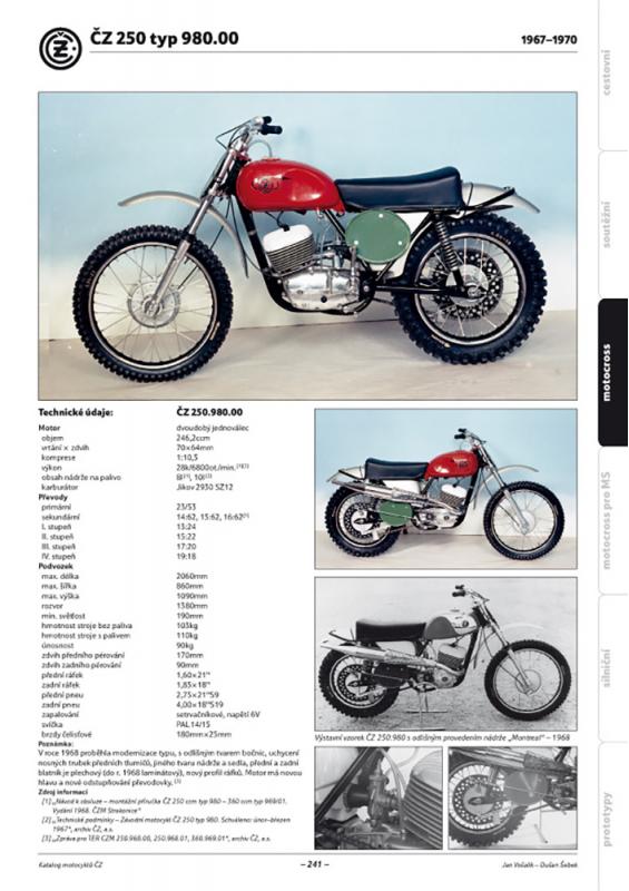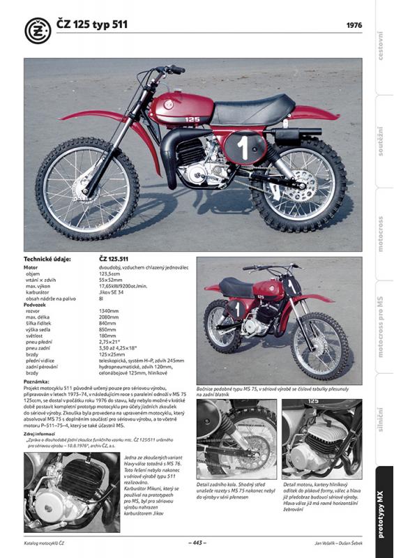 popisuje 37 samostatně sériově vyráběných typů motokrosových motocyklů ČZ